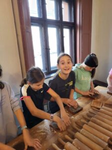 Następnie przenieśliśmy się w czasie na warsztaty piernikowe, podczas których poznaliśmy tajniki wypieku tradycyjnych toruńskich pierników. Własnoręcznie wykonane smakołyki to pamiątka, którą każdy z uczestników mógł zabrać ze sobą do domu.