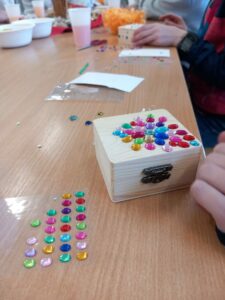 W piątek w naszej szkole Dzień Kobiet zamienił się w prawdziwy festiwal kontrastów! Dziewczynki, z cierpliwością godną mistrzów jubilerstwa, tworzyły unikatową biżuterię oraz godne jej szkatułki. W ruch poszły kolorowe koraliki, błyszczące kamyczki, a nawet makaron o fantazyjnych kształtach. Powstawały małe dzieła sztuki, a precyzja w dobieraniu koralików i wycinaniu elementów do Decoupage’u mogłaby zawstydzić niejednego zegarmistrza.